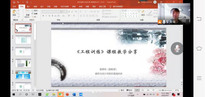 2022年4月1日,建築與設計學院風景園林系通過騰訊會議召開了線上教學研讨會。會議由翟美珠老師主持,會議主題為“《工程訓練》課程教學經驗分享”。風景園林系全體專職教師參加了會議。